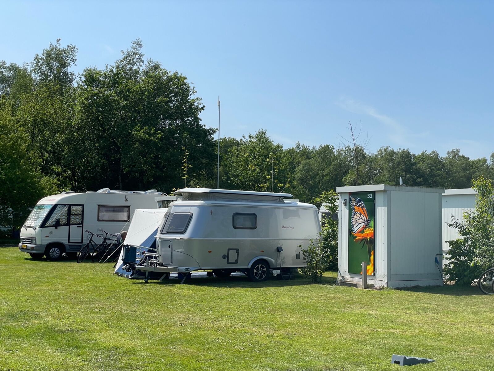 Der Campingplatz liegt auf einer wunderschönen Wiese, umgeben von viel Grün.